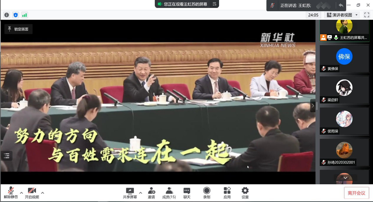 3月24日,太阳成集团tyc122ccvip本科三支部线上举行主题党日活动,围绕“聚焦两会”这一主题,组织支部全体党员学习习近平总书记在全国两会中的讲话精神,会议由党支部书记黄佛保老师主持。