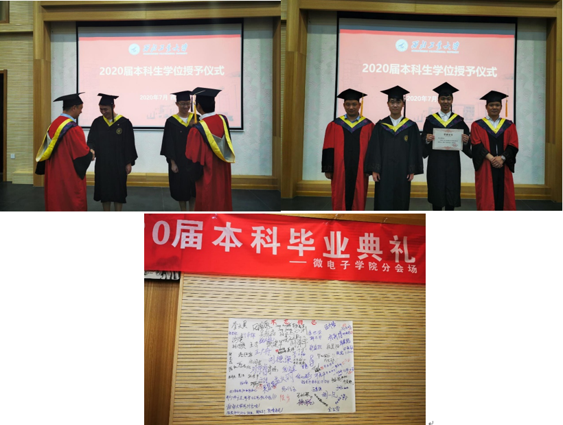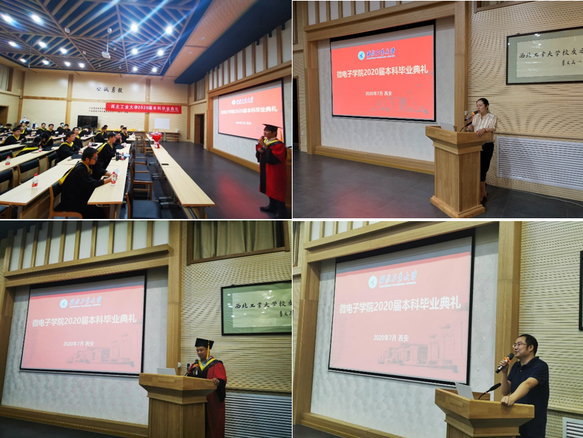 710日下午,西北工业大学太阳成集团tyc122ccvip2020届本科毕业典礼暨学位授予仪式在友谊校区阶二会议厅举行,祝贺全体微电子本科毕业生圆满完成学业任务,获得学士学位。学院副院长王少熙,党委副书记彭蓉,教师代表马彦昭、毕业班辅导员阴玥和全体本科毕业生参加毕业典礼,辅导员阴玥主持仪式现场。