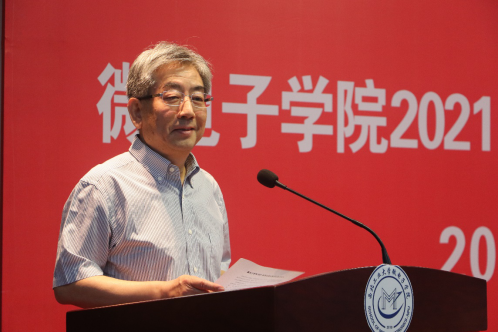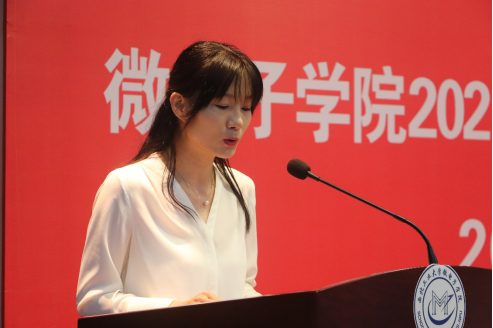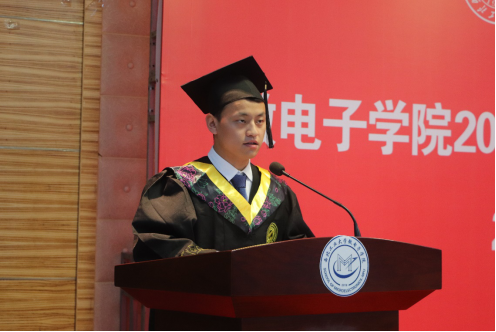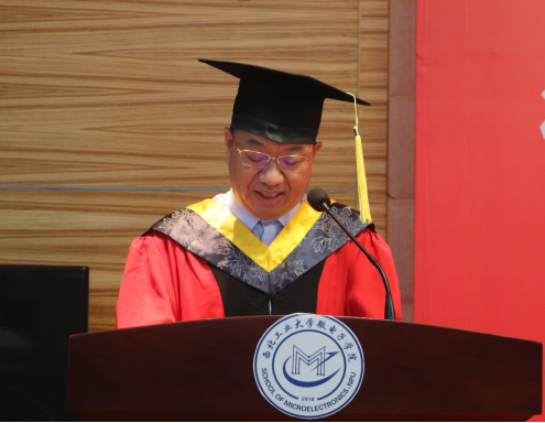 典礼第四阶段,党委副书记(主持工作)寄语:甘雪涛代表学院党委向同学们表示衷心的祝福和感谢。希望同学们铭记“公诚勇毅”的校训,将个人理想抱负与党和国家的发展相结合,时刻心系祖国,心系党,作为微电子科学与工程专业学生,要牢记使命,为我国集成电路领域发展做出自己的贡献。