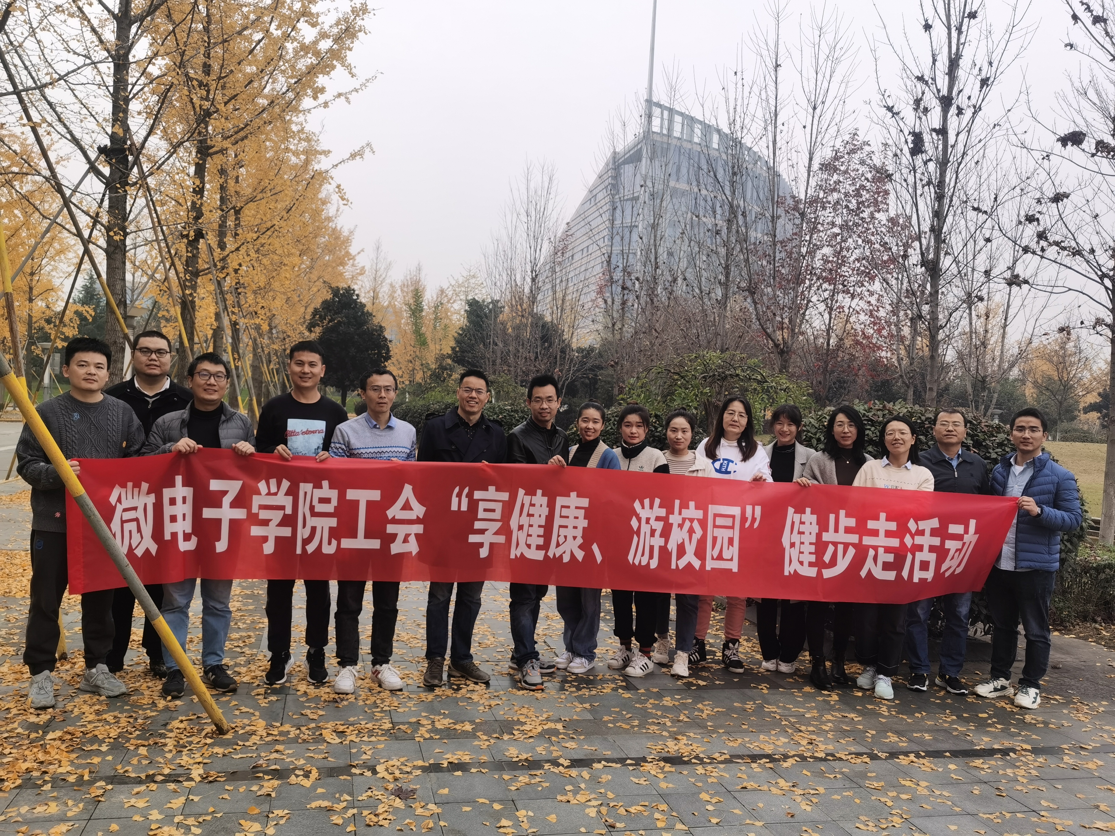 11月4日,为了丰富业余生活,提高教职工身体素质,促进学院内部交流,在领略校园秋景的同时,进一步增强教职工的凝聚力和向心力,我院工会举办“享健康、游校园”健步走活动。
