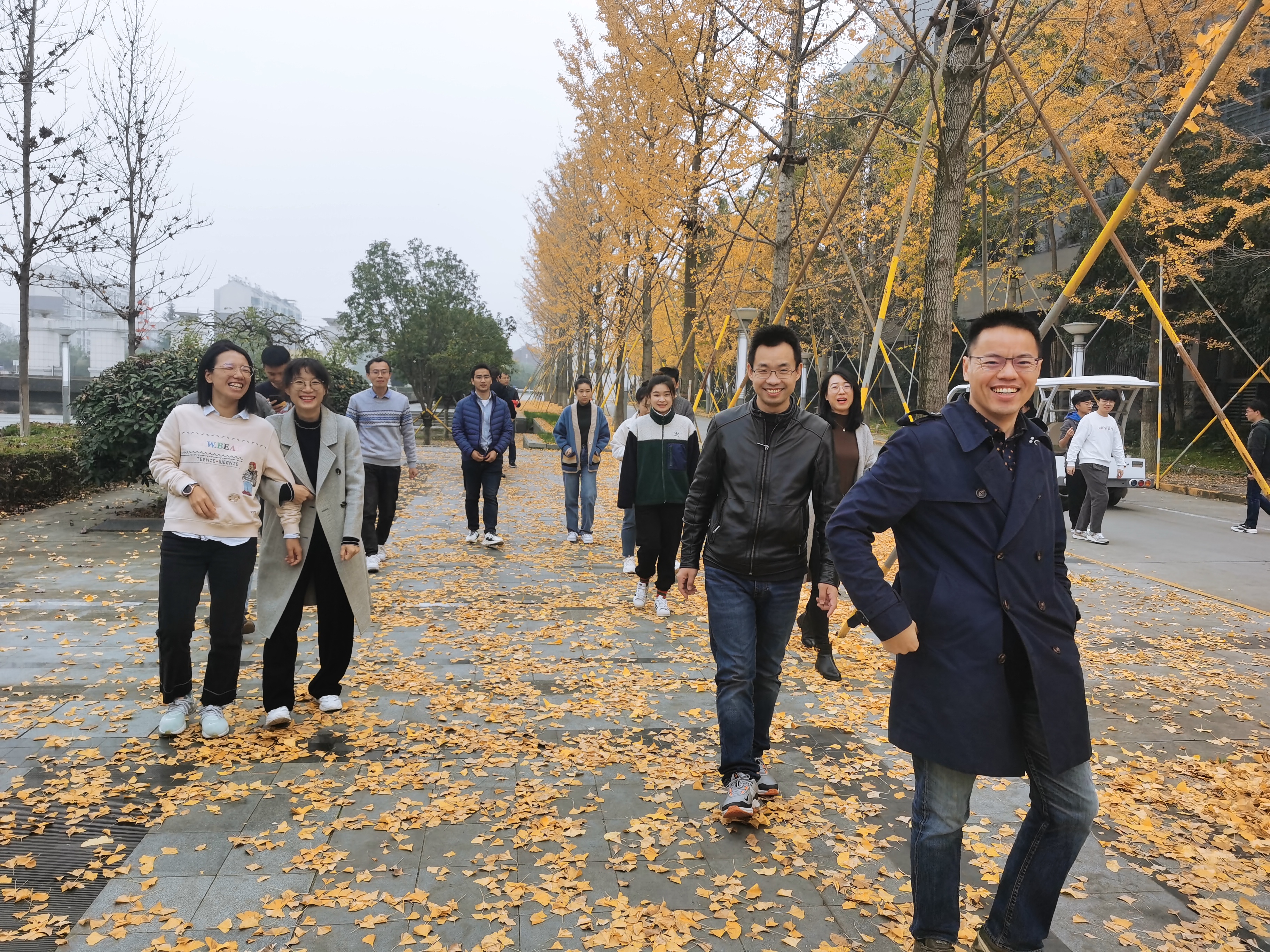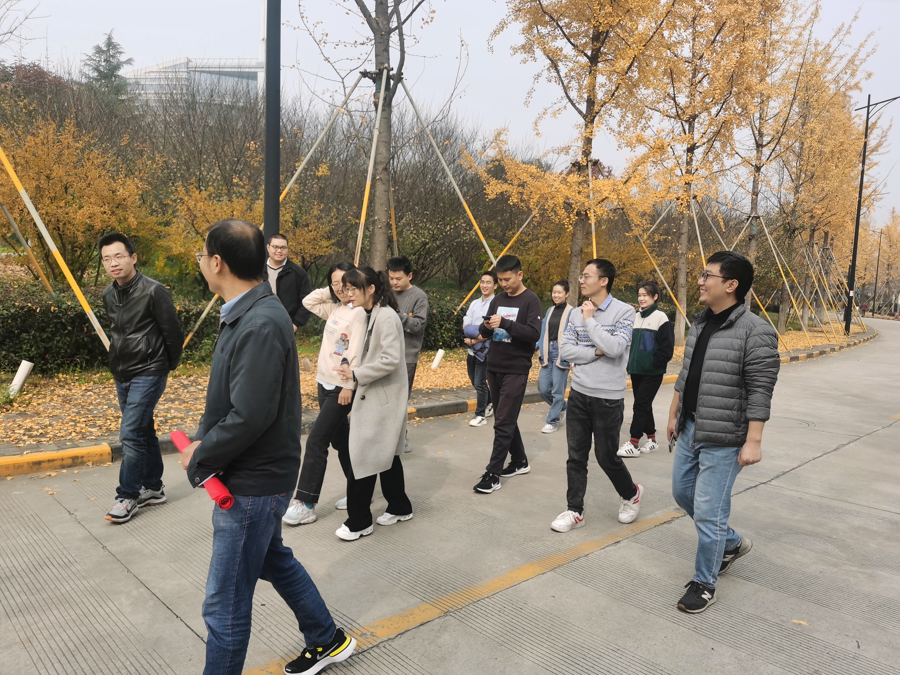 此次活动吸引了十几名教职工参加。午饭后,健走从校门口开始,围绕学院大楼、校园湖泊漫步。秋季的校园,点点阳光照耀,片片黄叶飞舞,湖泊里的鱼儿自由自在地遨游,大家边走边聊,在教学、科研工作繁忙之际,享受惬意、悠闲的时光。