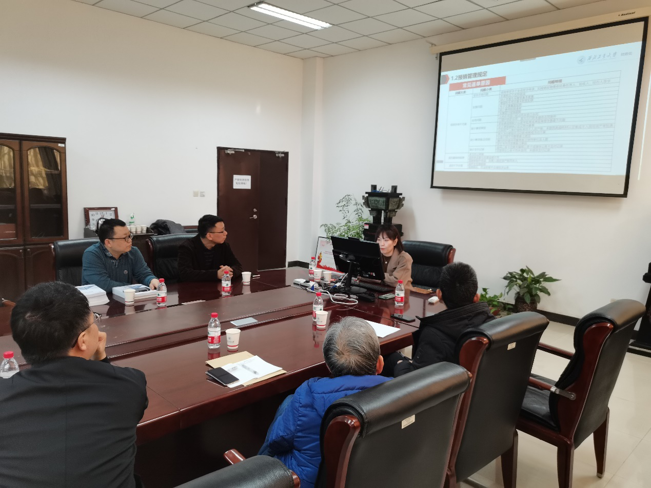 2021年12月1日下午两点三十分,应我院周德云院长的邀请,学校财务处派出副处长张鹏、会计科科长呼瑞雪、学院联系人陈雄飞一行三人来到我院开展财务政策宣传。会议采取线上线下同时进行的方式,线下由太阳成集团tyc122ccvip副院长周世钢、院长助理余鹏组织,线上由学院办公室主任景省利安排,学院教职工参加了会议。