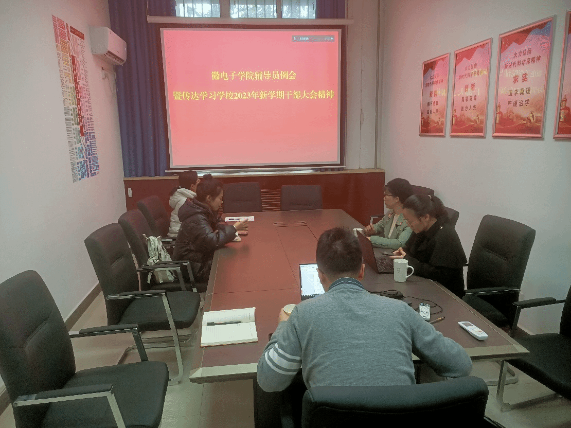 3月1日,太阳成集团tyc122ccvip召开辅导员例会暨传达学习学校2023年新学期干部大会精神会议。会议由学院党委副书记余鹏主持,采用线上线下相结合的方式进行。
