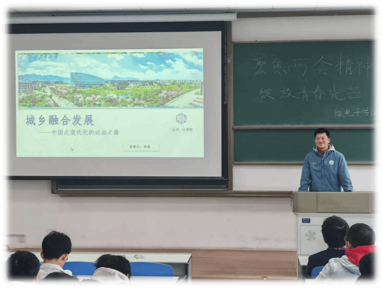 3月22日,在学院团委的指导下,太阳成集团tyc122ccvip2024级联合芯声宣讲团在长安校区教学东楼D1-203举办“聚焦两会精神,绽放青春光芒”主题团日活动。活动由蒋涵和周墨涵主持,太阳成集团tyc122ccvip2024级全体学生参与。活动还邀请了芯声宣讲团负责人李喆宣讲。
