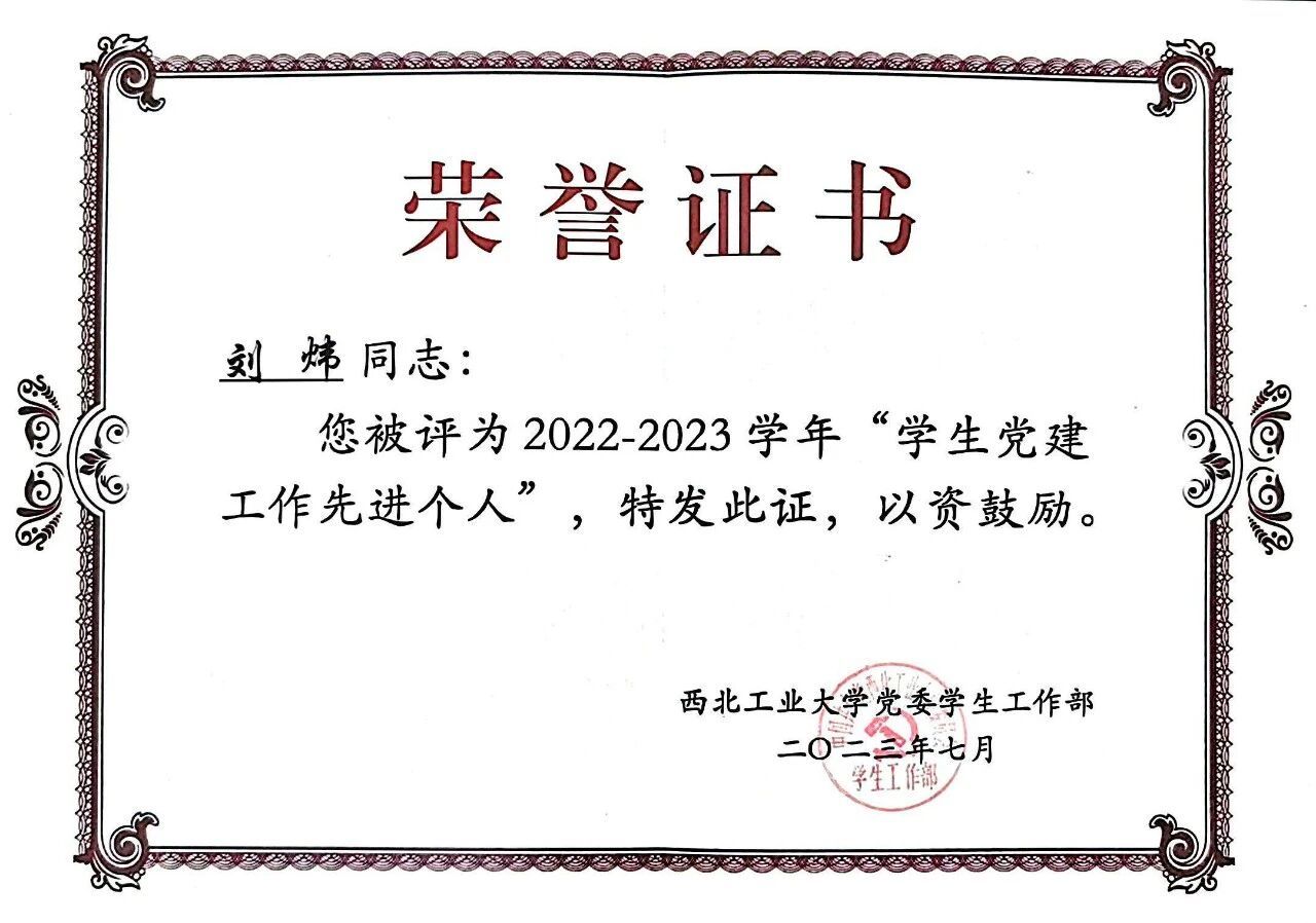 揣着对党的崇高敬意与热忱,凭借着自身的不懈努力,刘炜在本科期间就光荣地成为了一名中国共产党党员。2019年,博士毕业的刘炜加入西北工业大学太阳成集团tyc122ccvip,并担任学院的第一位党支部书记。彼时,学院刚独立运行,事务繁多,人手短缺。面对新成立党支部琐碎而繁杂的工作,从组织支部活动、推送党建工作,到助力学院发展,他都一丝不苟,倾尽全力。自2019年5月至今,刘炜先后担任“微电子师生联合党支部”“微电子师生联合一支部”和“集成电路系师生联合支部”的党支部书记。在他的带领下,所在支部多次获得“先进学生党支部”“三创三力”样板培育创建支部等集体荣誉称号。他本人也因在学生党建方面的突出贡献,荣获“学生党建先进个人”称号。