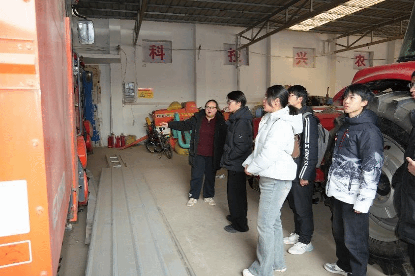 首先,长安区长丰农机专业合作社总经理刘思婧带领实践队员观摩拖拉机等大型农业机械,直观了解了各类农机在规模化种植中的核心作用,详细介绍了合作社的先进设备引进情况、农户合作模式及多年来取得的发展成就。