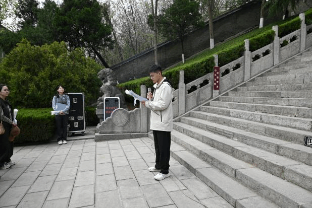 本次清明祭扫活动由24级本科生张之昭全程主持。首先,党员代表李雨彤结合西安事变重要历史背景,深情讲述杨虎城将军的革命事迹,带领大家重温这位爱国将领为民族独立、抗日救亡作出的卓越贡献。